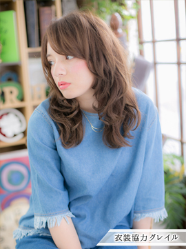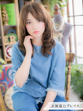 フリルのように織り重なった毛先のカールが綺麗にまとまったエアリーロング。斜めバングとイノセントカラーで顔周りの表情を明るく。かきあげや耳かけでスッキリ見せてもGOOD。フェミニンとカジュアルの絶妙バランスで☆