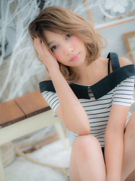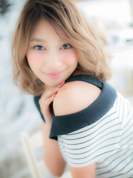 無造作ウェーブと斜めバングにハイトーンをオン!ギャルっぽく見えるスタイルでも、ゆらぎ感あるアンニュイカールで優し気な雰囲気にすることで、フェミニンでやわらかな印象に。顔周りをカバーしているので小顔対策も◎
