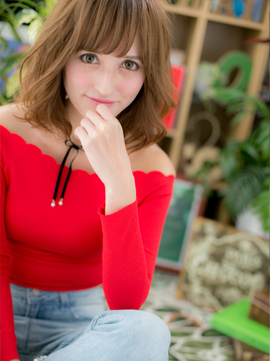 パッと目を引くエアリーウェーブで大人かわいいふわミディスタイル。カラーもハイライトなどをいれたメルトカラーでグンとオシャレ感もUPします!前髪は厚めバングで目を強調させて小顔効果もバッチリ♪