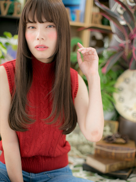 重めスタイルに見えがちのロングヘアーも、ストカルでボリュームを抑えて美人髪に♪サラサラなツヤ感はワンランクUPさせてくれます。厚めバングで小顔効果もバッチリ。カラーはマーメイドアッシュやイノセントカラー。
