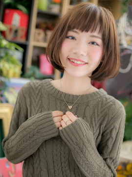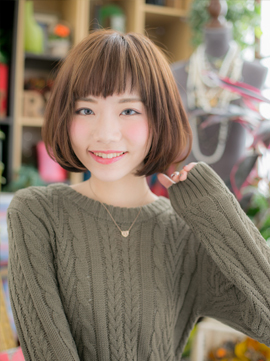 シンプルになりがちなナチュラルボブも、アシンメトリーなパッツンバングでとびきり個性的でキュートなガーリーボブにイメチェン!頬のラインに沿ったサイドの毛流れで気になんる輪郭をカバー。小顔対策もバッチリです。