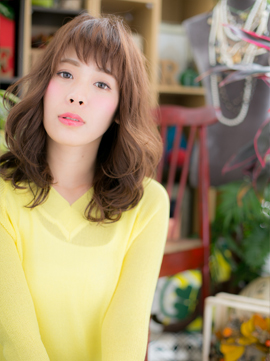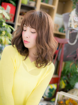 リップラインからふわりと広がるAラインシルエットがボリューミーなグラマラスミディ。重めスタイルにうぶバングでアクセントを加え、大人ガーリーな印象に。耳かけでスッキリさせたり、アップスタイルもセクシー。