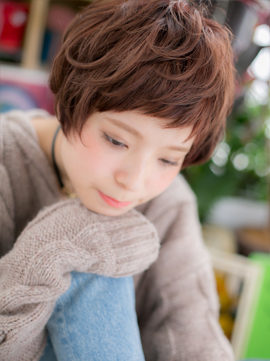思い切って短くカジュアルモードなショートスタイルもオススメです!光に透けたピンク系カラーと短めバングが印象的に♪似合わせカットで頭の形も補正して形よく見えます。直毛の方はくせ毛風のパーマでカールをつけて。