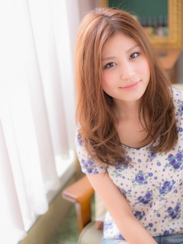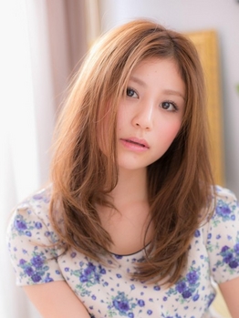カラーはハイトーンの中にも上品さをだす様に、透明感もプラス。女っぽさが出るセミロングは毛先のニュアンスで印象も変化させることができて、優秀スタイル。パサつきは避けたいので、潤いも必須!毛髪改善トリートメントでよりツヤ美髪に!