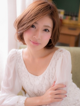 フンワリ柔かい丸みのあるボブスタイル。頬周りの重みで顔をシャープに見せ、色っぽさもキープ!カラーも重くなりすぎない華やかな明るめツヤカラーで。クールフェミニンでラブなスウィートロング,耳かけ,伸ばしかけにも。アッシュベージュで旬を先取り!