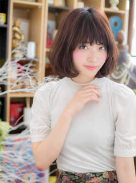 エアリー感あるゆるふわパーマで重めスタイルも重たく見えません♪肌色きれいに見せる肌合わせカラーでキュートなグラマラスヘアに。厚めバング、斜めバング、センターパートなどスタイルに合わせて選びます。