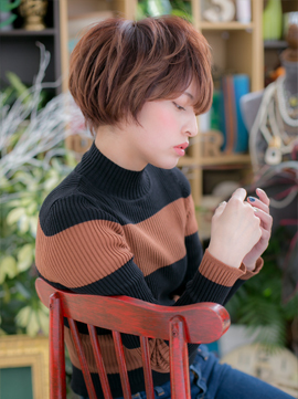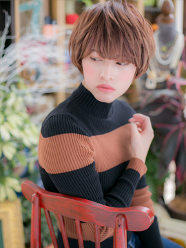 グラデーションカットのアシンメトリーなショートボブ。表面に軽くレイヤーを入れて、スライドカットで重軽な質感を作ります。ワンカールの重なりでふんわり仕上げ、大人っぽいクールさの中にフェミニンさも隠し味に。