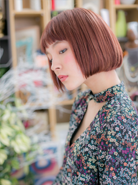 ノームコアなストレートのクラシカルボブにレッド系カラーをオン。ショートバングとの合わせ技で、ぐんとポップで垢抜けた印象に。凛としたクールな表情の中に遊びココロのエッセンスを加え大人カジュアルにイメチェン。