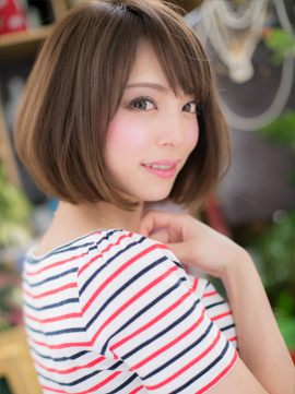 頬ラインに沿った毛流れでフェイスラインをカモフラージュしつつ、ダークトーンのツヤカラーでクールな印象に見せたハンサムミディ。斜めバングと合わせて知的フェミニンな雰囲気に。オフィスでも◎のナチュラルミディ。