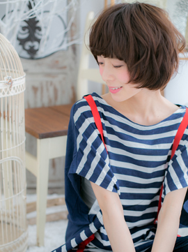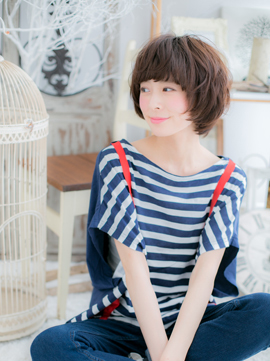 ノームコアなナチュラルボブにくせ毛風のエアリーカールをオン。自然なゆるウェーブのベビーショートでフェミニンに。厚めバングと合わせて目力UP!顔を小さくcuteに見せます。(メイク担当:COVER HAIR GROUP 棟方)