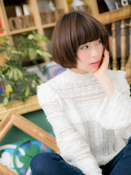 ワンカールの丸みあるフォルムがキュートで個性的なラブガーリーボブ。耳横にボリュームを持たせて小顔に見せて。厚めバングで目力UP!(bliss川口店アシスタント成田のスタイル メイク担当:北浦和店 棟方)