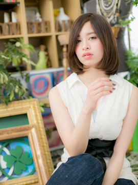 ボブが伸びてきたら内巻きワンカールで動きをプラス♪ゆるいCカールが弾めば、やわらかフェミニンな印象に。計算された似合わせカットで再現性の高い愛され好感ミディに。伸ばしかけの方に◎(メイク担当:川口店 成田)