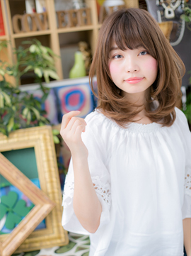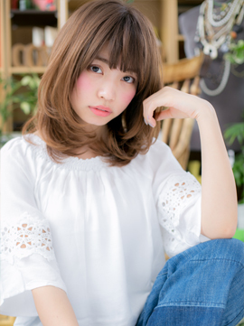 毛先の内巻きワンカールで丸みあるフェミニンな印象に。顔をすっぽり包み込みフェイスラインをカモフラージュ。小顔見せバッチリ。フリンジバングと合わせて旬顔に。くせ毛やうねりもカバーしてまとまりやすくします。