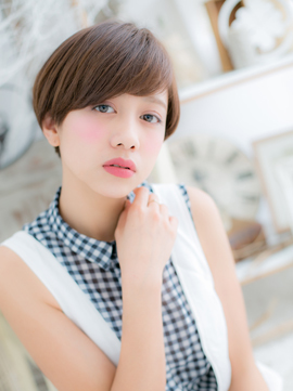 無駄を削ぎ落し、コンパクトフォルムで全体をスッキリまとめたスマートボブ。小頭に見せてスタイルアップを狙います。厚めバングで目元を強調して目力UP。アシンメトリーな耳かけもGOOD!(メイク担当:北浦和店 棟方)