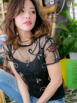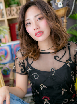ノーバングとニュアンスカールでラフに仕上げたエアリーミディ。無造作にかきあげて、こなれ感を出してもGOOD。ベージュカラーやグラデーションカラーで立体的に仕上げて表情豊かに。セミウェットな質感もセクシーで◎