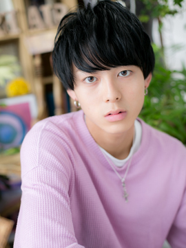 ナチュラルな黒髪マッシュは清潔感も好感度もバッチリ!重めバングで目元を印象つけて目力UP!さりげない色気を醸しつつ、オシャレにキメて。七三や刈り上げで毛量調節してスッキリと。(メイク担当:北浦和店 棟方)