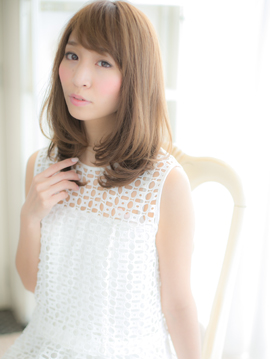 女の子らしさを発揮できるセミロングヘアー!あまり段を入れずにまとまりあるワンカールで毛先の柔らかいボリュームがポイント!斜めバングでフェミニンさも♪これからの時期は明るめなヌーディカラー,ベージュカラー,ルミエールカラーがオススメです★