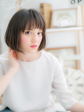 モードでクラシカルな印象の黒髪ストレートボブに、シースルーの斜めバングをオン。大人っぽい雰囲気の中にあどけないポイントを入れることで、表情がやわらかくなり親しみやすい好感スタイルにイメチェン。耳かけも◎