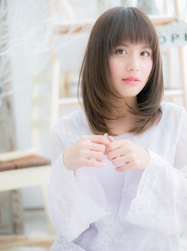 女の子を可愛く見せてくれるテッパンスタイルのワンカールストレート。鎖骨ラインの内巻きカールで顔周りを華やかに見せつつも、しっかり輪郭をカバーして小顔に見せてくれます。ワイドバングやフリンジバングで旬顔に。