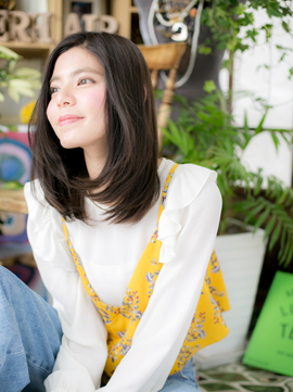 ローレイヤーのワンカールストレート。重めスタイルでもツヤと透明感あるモーブカラーで、軽やかでイノセントな愛され好感スタイルに☆(メイク担当:川口店 成田)(bliss北浦和店アシスタント棟方の撮影スタイルです)