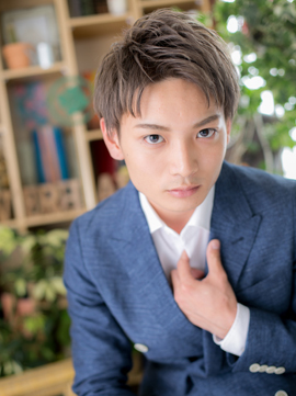 サイドを刈り上げた爽やか七三マッシュ。好感度大の王道ヘアはカラーで差をつけて!外国人風のベージュカラーやアッシュ系カラーで表情豊かに仕上げれば、男前っぷりもUPのモテショートに!(メイク担当:北浦和店 棟方)
