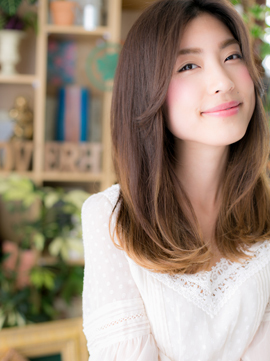 センターパートでしっとりまとめた大人かわいいエアリーロング。毛先のグラデーションカラーでラブカジュアルな雰囲気に。無造作なワンサイドやラフなアップのアレンジも抜け感が出てGOOD!(メイク担当:北浦和店 近藤)
