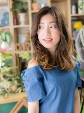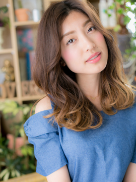 センターパート&ボリュームカールがグラマラス!イイ女オーラ全開エアリーロング。グラデーションカラーで表情豊かに見せつつカジュアルダウンすれば同性からも好感度UPのモテスタイルに!(メイク担当:北浦和店 近藤)