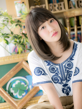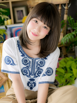 ペタっと平面的になりがちなナチュラルボブは、ガーリーな厚めバングとふわっとした空気感を加えて、ほんわかAラインを表現。ボブからの伸ばしかけの方にもオススメ。王道の好感ストレートミディでとびきり可愛く♪