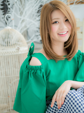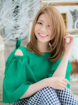 ノーバングでスッキリまとめて小顔に見せたナチュラルストレート。毛先のほんのりワンカールで丸みを出して、やわらかでガーリーな雰囲気に。透明感ある明るいベージュカラーやグラデーションカラーで華やかに仕上げて☆