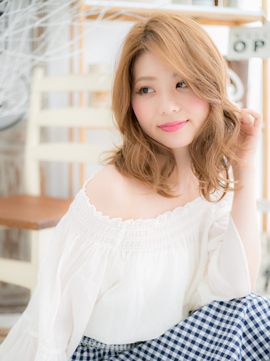 まろやかウェーブでラフな色っぽさを、攻めのハイトーンカラーで華やかなグラマラス感を演出。ほのかなくびれカールで程良い大人のセクシーさを残して。大人ボブからの伸ばしかけの方にもオススメ。耳かけもフェミニン♪