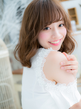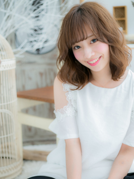 透け感バングとゆるふわミディのモテの王道スタイル。明るいベージュカラーや温感カラーで顔周りを華やかに。表情豊かなガーリースタイルは男女問わず人気。オフィスでもデートでも女子会でもOKの万能スタイルです★