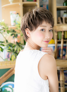 丸みあるコンパクトフォルムで、フェミニン&小頭に仕上げた大人ショート。トップをふんわり仕上げることでスタイルアップ効果を狙います。スッキリショートでも、空気感&温感カラーで女性らしい雰囲気に仕上がります♪