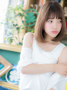 頬を包み込むワンカールストレート&透明感溢れるツヤカラーで、好感度抜群のモテヘアに♪シースルーバングで表情をチラ見せして、甘え顔のあどけない雰囲気に♪デートでも女子会でも人気!(メイク担当:川口店 成田)