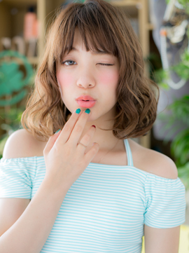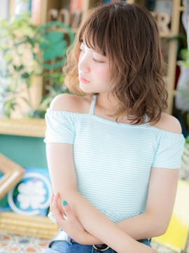 肩下のボブベース。トップにレイヤーを入れてやわらかさと軽さを演出。シフォンウェーブでフェミニンに仕上げたまろやかミディ。グラデーションカラーやインナーカラーで立体的に仕上げて!(メイク担当:川口店 成田)