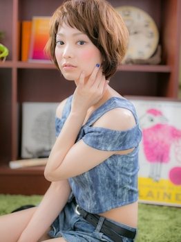 人気のゆるふわショートスタイル!ルーズなカールが大人かわいいフォルムをつくります。ボブベースの重めシルエットでショート初心者にもトライしやすい☆内側に入ってるダークカラーも小顔ポイント。