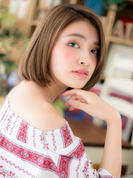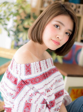 顔周りの前下がりライン&コンパクトフォルムで小顔に見せて、スタイルアップ効果☆ナチュラルボブはオフィスでもバッチリ。くせ毛風カールをつけたフェミニンボブやクールな大人ボブも◎(メイク担当:川口店 成田)