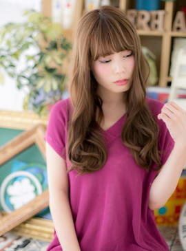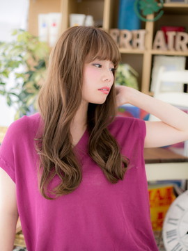 アンニュイ顔を作るエアリーカールのフェミニンロング。斜めバングや厚めバングで目力UP!前下がりラインで小顔に見せて美人顔に♪大人かわいい耳かけやワンサイドで抜け感を出しても◎(メイク担当:北浦和店 棟方)