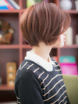 ボーイッシュになりすぎない、ナチュラルショートボブ。サイドに流した前髪のラインからバックまで、きれいな曲線でつながるようにカット。丸みあるフォルムとツヤ感で、フェミニンにもなる大人ボブ。伸ばしかけの方にもオススメ!センターパートや耳かけも♪
