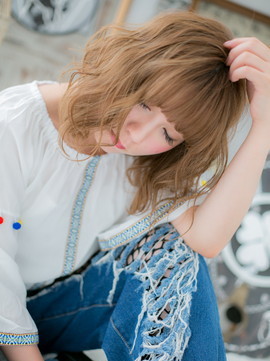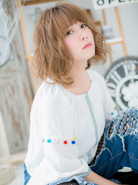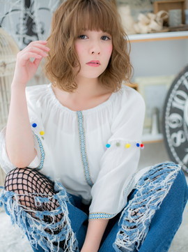顔周りを華やかにするくせ毛風カールが大人かわいいふわミディ。斜めバングや厚めバング、透け感バングで目元を印象つけて。前下がりで小顔に見せれば女の子度UP!耳かけもGOOD!(メイク担当:川口店 成田)
