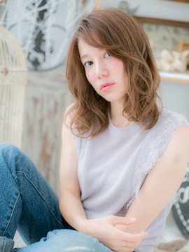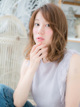 透け感ある斜めバングで表情をチラ見せした、色っぽかわいいふわミディ。厚めバングやワイドバングで個性的にしたり、耳かけも大人かわいい。くせ毛風カールのふわミディでモテ髪に♪(メイク担当:北浦和店 近藤)