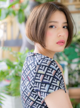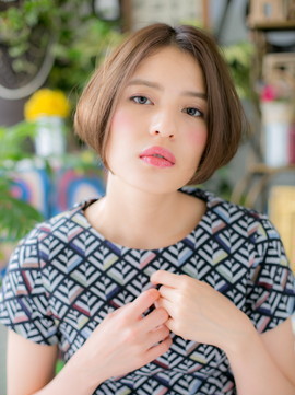 前下がりラインで輪郭をカバーした小顔見せナチュラルボブ。センターパートでクールにしたり、斜めバングや厚めバングでフェミニンな雰囲気にしてもOK。くせ毛風カールをつけたフェミニンボブや大人ボブもGOOD!
