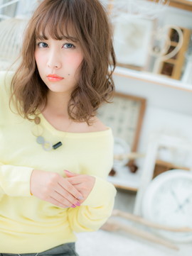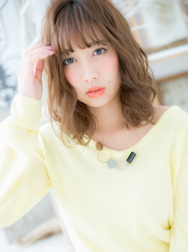 透け感バングとくせ毛風カールで小顔ガーリーなふわミディ。大人かわいい耳かけや前下がりも♪ナチュラルボブやフェミニンボブ、大人ボブや前下がりボブからの伸ばしかけにも◎(メイク担当:COVER HAIR GROUP棟方)