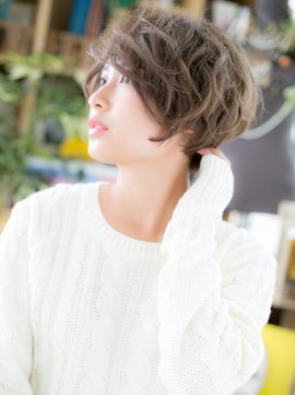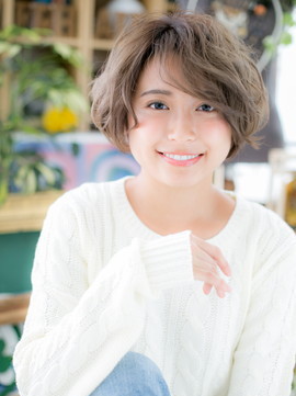 ふわくしゅっとしたくせ毛風エアリーカールが大人かわいい前下がりボブ。輪郭カバーして小顔見せ、斜めバングで目力UP。キュートなフェミニンボブは耳かけや厚めバングも似合います。(メイク担当:COVER HAIR GROUP成田)
