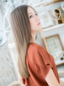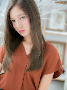 男女問わず人気のワンカールストレート。頬にかかる前下がりラインで小顔に見せフェミニンに。アッシュ系カラーが落ち着いた印象。くせ毛風カールや耳かけも個性的で大人かわいい。(メイク担当:COVER HAIR GROUP成田)