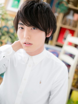 長めバング&黒髪の重めスタイは、束感とニュアンス感ある動きで軽さを演出。七三で目力UPしてクールな旬顔に。ビジネスシーンでは、アップバングやオールバックでスッキリさせても◎(メイク担当:川口店 成田)