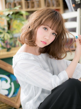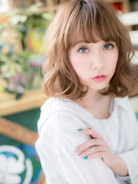 透け感ある斜めバングで目元を強調し、前下がりで小顔にメイクした大人かわいいふわミディ。ナチュラルボブや前下がりボブからのイメチェンにオススメの色っぽかわいいフェミニンボブです。(メイク担当:川口店 成田)