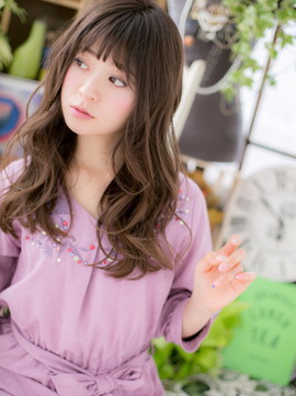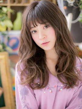 モテ要素満載のラブロング。斜めバングや厚めバングで目力UPし、前下がりで小顔見せ。ボリュームカールでグラマラスにしたり、くせ毛風カールで抜け感を出しても◎耳かけも大人かわいい。(メイク担当:川口店 成田)
