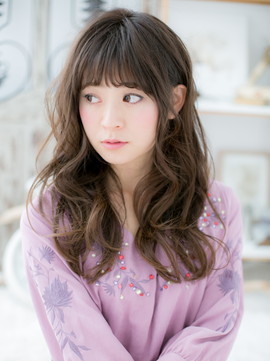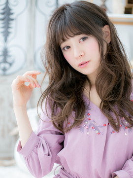 モテ要素満載のラブロング。斜めバングや厚めバングで目力UPし、前下がりで小顔見せ。ボリュームカールでグラマラスにしたり、くせ毛風カールで抜け感を出しても◎耳かけも大人かわいい。(メイク担当:川口店 成田)