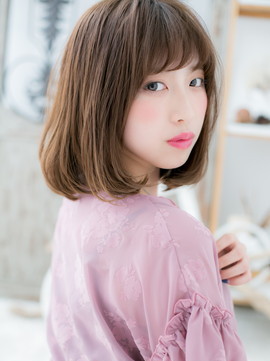 輪郭をカバーして小顔に見せるワンカールと、目力強調の斜めバングで、ナチュラルミディを格上げ。黒髪や厚めバング、耳かけで個性的にしてもラブ可愛い。くせ毛風のふわミディもモテ髪☆(メイク担当:北浦和店 棟方)