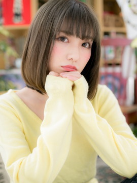 ローレイヤーの重めスタイルでも、透明感あるツヤカラーで軽やかな仕上がり。前下がりラインで小顔に見せたり、斜めバングや厚めバングで目力UPしてもOK!耳かけも大人かわいい。(メイク担当:川口店 成田)